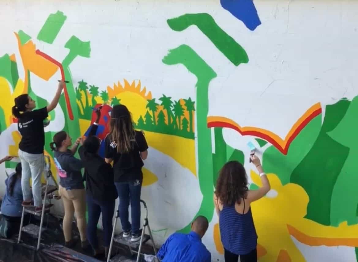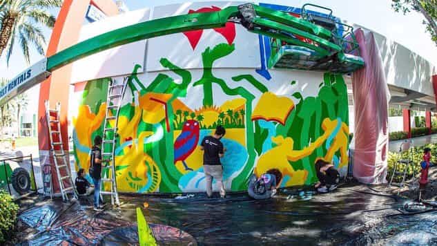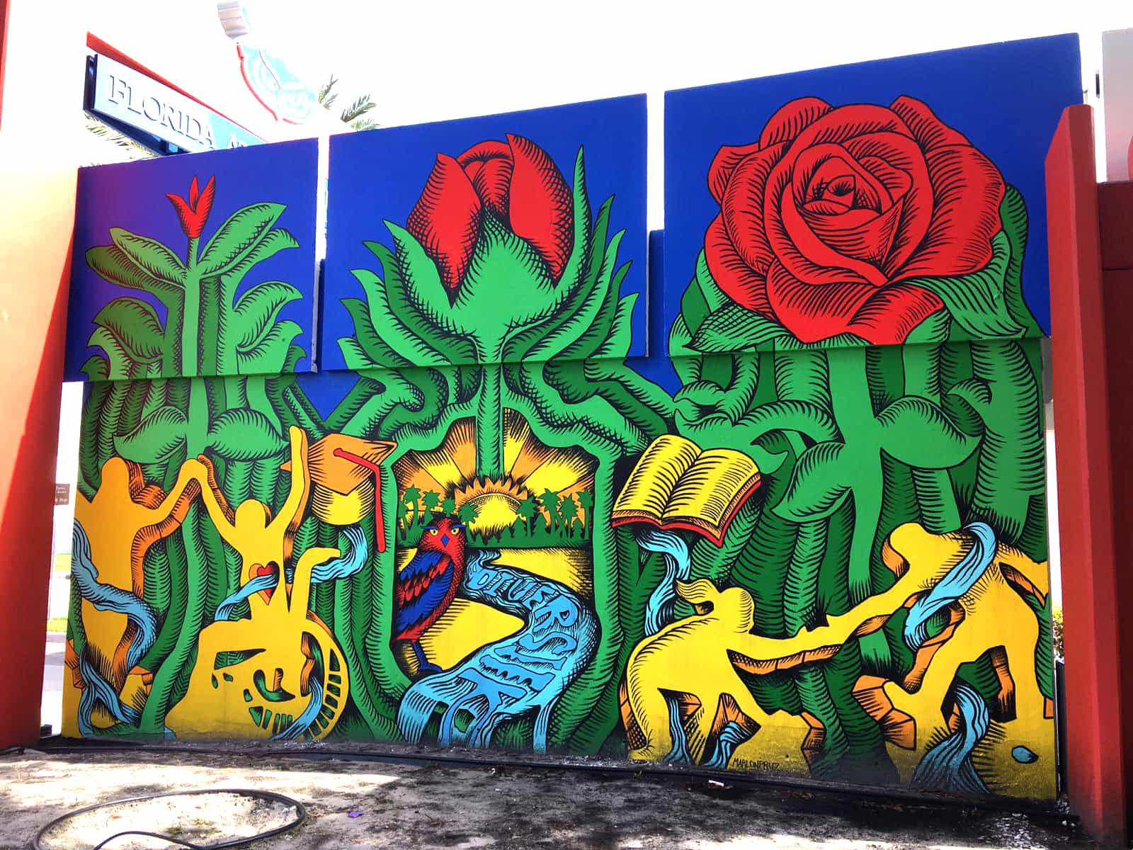 Florida Atlantic University hired Marlon Pruz to create this Paint by number mural on one of their walls on campus. The concept is to provide an easy paint by number mural that anyone is able to paint. As students and faculty walked by, they could choose to participate by coloring in a section, and leaving their mark on the school forever. The final product being a fully displayable, collaborative mural that looks as though the artist painted themselves.